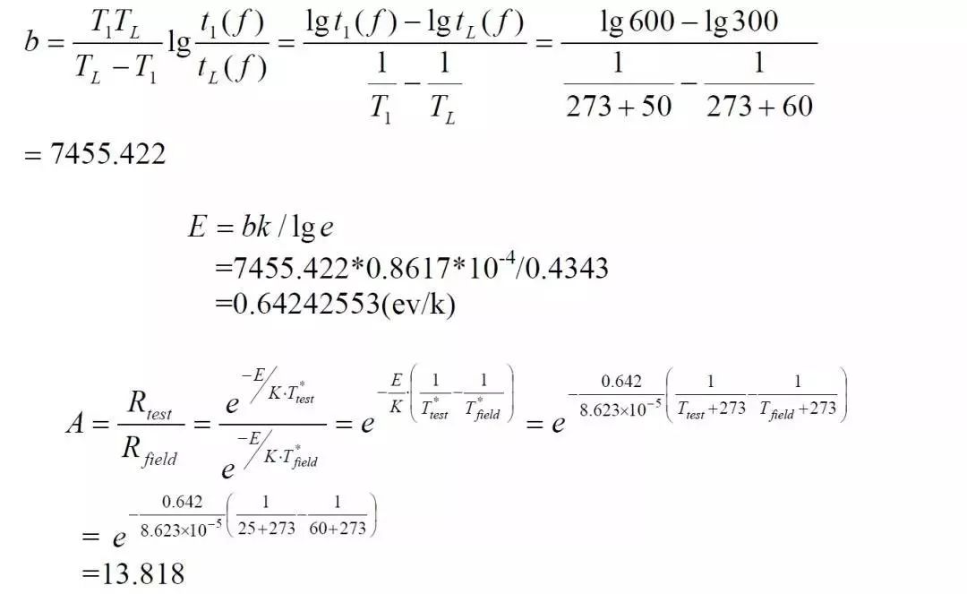 因此,对于两个不同温度应力(T1,T2)下的加速系数计算模型,就可以表达为: