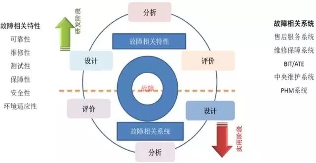图3从方法论上进一步解释了可靠性系统工程,就是在研发阶段要进行与故障相关特性的设计、分析、试验评价工作,同时还要做与故障相关的系统设计、分析、评价工作。