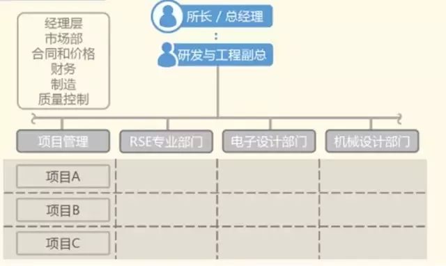 第三种结构是矩阵的组织,这是一种理想的状态。企业里应该有专门的可靠性研究室,而每个项目里还都有可靠性工程师。在具体实施项目过程中,专业部门和项目组的可靠性工程师联合组成团队。